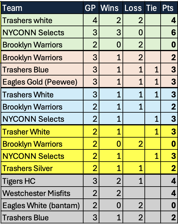 4) There will be a max goal differential of 6 per game. If a team wins 11-1 or 7-1, it will show up as 7-1